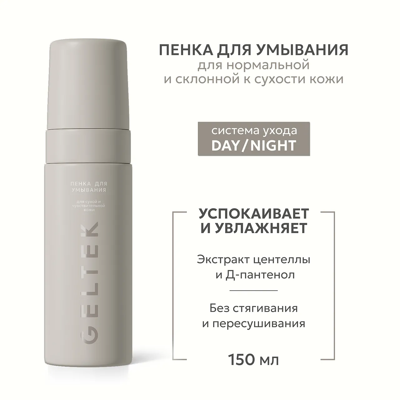 GELTEK Day/Night Пенка для умывания для сухой и чувствительной кожи, 150мл, ГЕЛЬТЕК