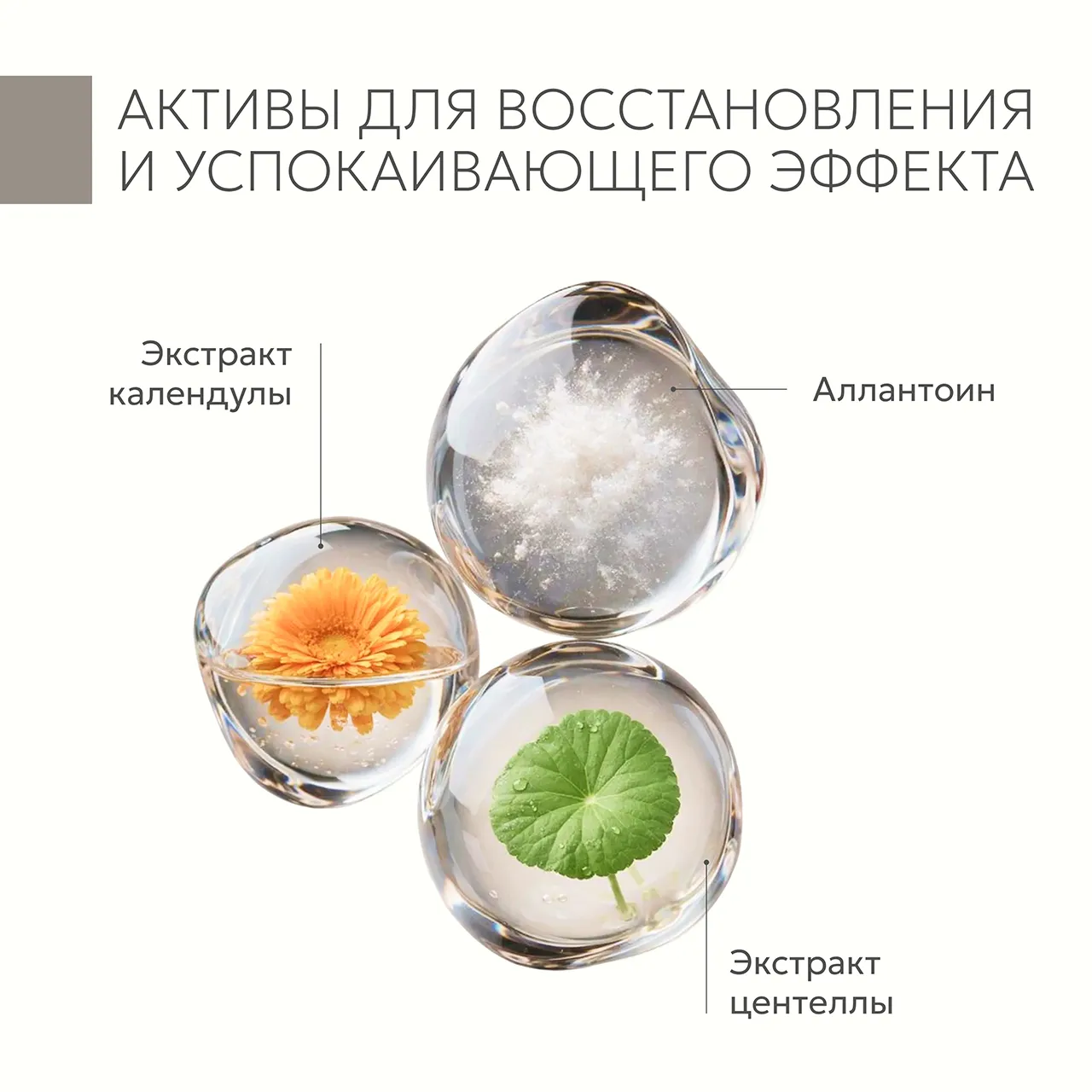 - Экстракты календулы и центеллы - успокаивают кожу, уменьшают покраснения и зуд, поддерживают барьерную функцию.