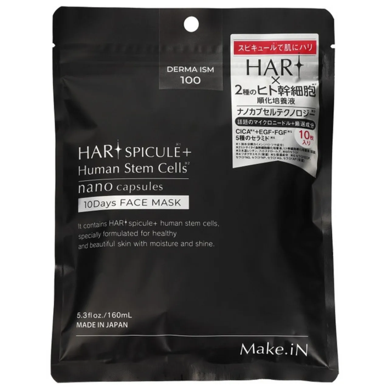 Make.iN DERMA ISM Маска тканевая антивозрастная со спикулами и стволовыми клетками, набор 10шт(160мл) / DERMA ISM 100 HARI Spicule Human Stem Cells 10 Days Face Mask