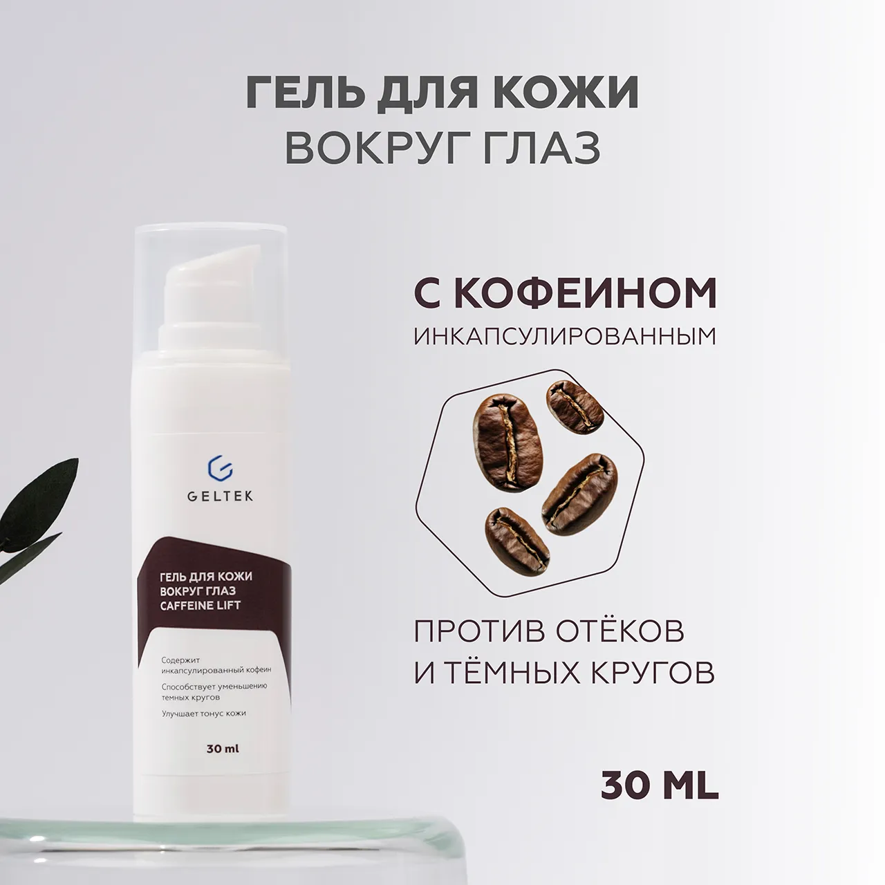 ГЕЛЬТЕК Гель для кожи вокруг глаз Caffeine Lift против темных кругов и отечности, 30мл, GELTEK