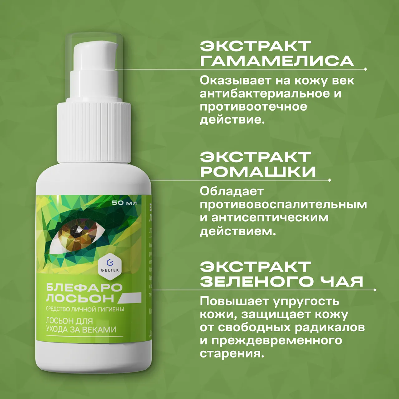 ГЕЛЬТЕК Блефаролосьон лосьон для ухода за веками, средство личной гигиены, 50мл, GELTEK